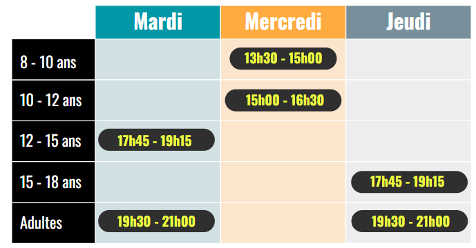 Horaires des cours :